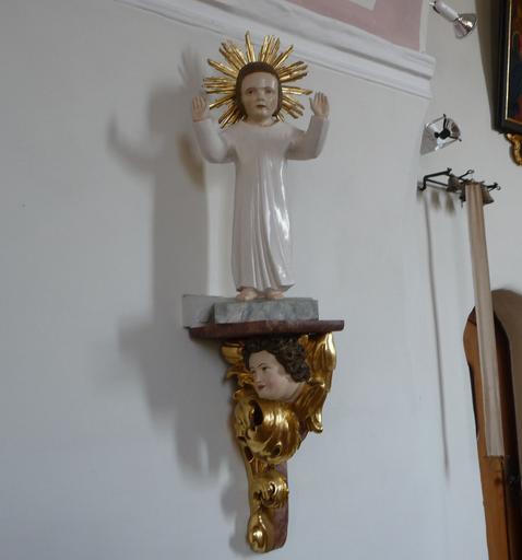 Keywords: Jesuskindlein Hohenpoelz.JPG en St Laurentius und Heinrich Hohenpölz in Landkreis Bamberg Germany Own Immanuel Giel 2009-04 St Laurentius und Heinrich Hohenpölz Statues of Jesus Christ as a baby
