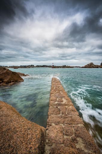Keywords: jetty sea seaside ocean atlantic brittany france clouds cloudy sky wind winter water europe french architecture portrait landscape coast outdoor pier nature blue long exposure