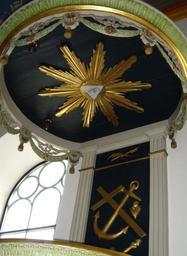 | Keywords: Jhwh laholm.jpg sv Predikstol i S t Clemens kyrka Laholm Tetragrammaton in sunburst on ceiling symbols of faith hope and charity love on wall own Ulca08 2009-02-11 Interior of Laholms kyrka Tetragrammaton in triangle I Corinthians 13 13 2009 in Laholm Municipality February 2009 in Sweden Churches in Sweden photographed in 2009 |