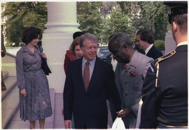 Keywords: Jimmy Carter greets the President of Zambia, Kenneth Kuanda - NARA - 179389.tif Scope and content General notes 179389 Local identifier President 1977-1981 Carter White House Staff Photographers 01/20/1977 - 01/20/1981 Jimmy Carter Library NLJC 441 Freedom Parkway Atlanta GA 30307-1498 1978-05-17 Record group Collection JC-WHSP Carter White House Photographs Collection 01/20/1977 - 01/22/1981 Record group ARC 1120 Carter White House Photographs Presidential compiled 01/20/1977 - 01/22/1981 Series ARC 173341 File unit Arrival ceremony for President Kuanda of Zambia 05/17/1978 - 05/17/1978 File unit ARC 179388 Variant control numbers NAIL Control Number NLC-WHSP-C-05682-7 yes Other versions NARA-cooperation PD-USGov Kenneth Kaunda State visits Jimmy Carter with national leaders Relations of the United States and Zambia 1978 in international relations |