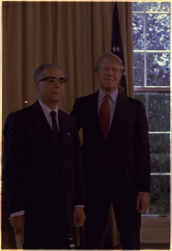 | Keywords: Jimmy Carter with Joaqin Balaguar President of the Dominican Republic - NARA - 176137.tif Scope and content General notes 176137 Local identifier President 1977-1981 Carter White House Staff Photographers 01/20/1977 - 01/20/1981 Jimmy Carter Library NLJC 441 Freedom Parkway Atlanta GA 30307-1498 1977-09-08 Record group Collection JC-WHSP Carter White House Photographs Collection 01/20/1977 - 01/22/1981 Record group ARC 1120 Carter White House Photographs Presidential compiled 01/20/1977 - 01/22/1981 Series ARC 173341 File unit 1-12 His Excellency General Hugo Banzer Suarez President of the Republic of Bolivia; 14-21 His Excellency Dr Joaquin Balaguar President of the Dominican Republic; 22-28 His Excellency General Carlos Humberto Romero President of the Republic of El Salvador 09/08/1977 - 09/08/1977 File unit ARC 176136 Variant control numbers NAIL Control Number NLC-WHSP-C-02664-17A yes Other versions NARA-cooperation PD-USGov JoaquĆn Balaguer Jimmy Carter |