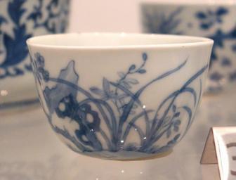 | Keywords: Jingdezhen cup, China, Qing dynasty, Kangxi period, 1662-1722, porcelain, underglaze blue - Royal Ontario Museum - DSC03768.JPG en Exhibit in the Royal Ontario Museum Toronto Ontario Canada This work is old enough so that it is in the public domain Photography was permitted in the museum without restriction 2013-10-08 13 53 22 own Daderot cc-zero Jingdezhen porcelain in the Royal Ontario Museum Uploaded with UploadWizard | ||||