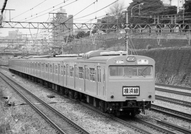 | Keywords: JNR 103 Yokohama line.jpg en JNR 103 for Yokohama line taken at Keikyu Kanagawa station ja 横 線用103系 京 神奈 駅から撮影 1985-03 own Hahifuheho cc-zero Uploaded with UploadWizard 1985 in rail transport in Japan JNR 103 Yokohama Line Black and white photographs of Japan in the 1980s Black and white photographs of trains in Japan |