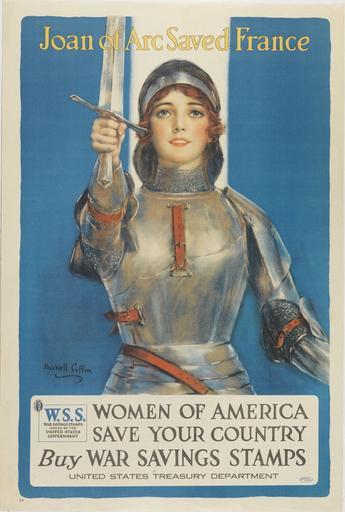 Keywords: world war i worldwari joan of arc joanofarc war saving stamps warsavingstamps united states treasury department unitedstatestreasurydepartment haskell coffin haskellcoffin women saviors womensaviors poster library company of philadelphia librarycompanyofphiladelphia people World War I-era poster urges to American women to buy War Saving Stamps by using Joan of Arc as a symbol of female patriotism. Issued by the United States Treasury Department; artist: Haskell Coffin. Accession Number: P.2284.122b Click here to view the record of this poster on ImPAC, the Library Company's digital collections catalog. World War I-era poster urges to American women to buy War Saving Stamps by using Joan of Arc as a symbol of female patriotism. Issued by the United States Treasury Department; artist: Haskell Coffin. Accession Number: P.2284.122b Click here to view the record of this poster on ImPAC, the Library Company's digital collections catalog. |