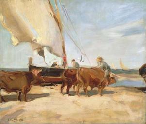 Keywords: Joaquin Sorolla y Bastida - En la playa de Valencia.jpg Artwork Creator Joaquín Sorolla 1910 oil canvas cm 47 5 56 1 object history credit line exhibition history Chicago The Art Institute of Chicago Paintings by Joaquín Sorolla y Bastida 14 February - 12 March 1911 no 146 <br/>St Louis The City Art Museum of St Louis Paintings by Joaquín Sorolla y Bastida 14 February - 20 March 1911 no 145 J Sorolla 1910 ~ lower left signature / date En la playa de Valencia ~ verso title accession number Christie's online 4380711 6961 7 London 18 November 2004 PD-old-auto-1923 1923 DEFAULTSORT Sorolla beach and cattle 1910 Christie's 2004 People at the beach in art by Joaquín Sorolla People with cattle in art by Joaquín Sorolla Paintings of boats by Joaquín Sorolla 1910 paintings in Spain Paintings of men with cattle