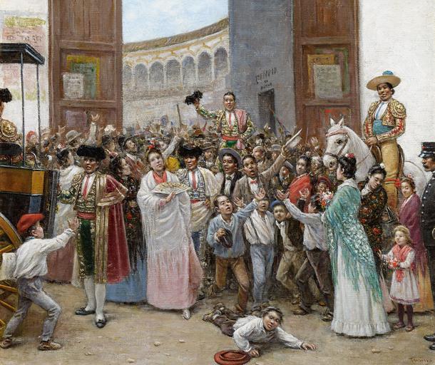 Keywords: Joaquín Turina y Areal Triumphal Exit from the Maestranza Bullring in Seville.jpg Triumphal Exit from the Maestranza Bullring in Seville Oil on canvas 27 5 x 32 cm Inv CTB 2000 71 Institution Museo Carmen Thyssen http //www carmenthyssenmalaga org/ by 1907 Joaquín Turina y Areal 1847-1907 PD-old-100 Paintings in the Museo Carmen Thyssen Málaga Joaquín Turina y Areal Paintings of Seville Toreros in art People of Andalusia in art Manila shawls |