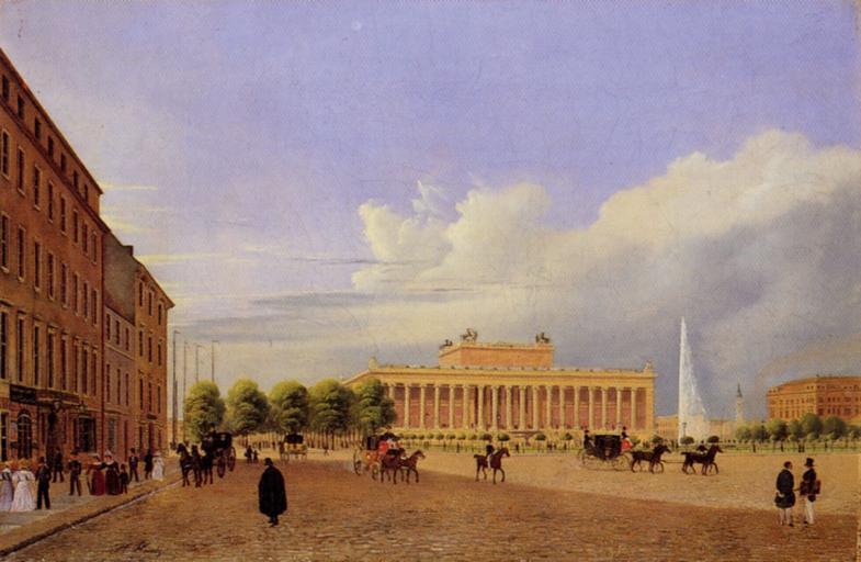 | View Original: | Johann_Heinrich_Hintze_-_Berlin,_Altes_Museum_von_der_Schlossfreiheit_aus.jpg (1600x1043) | |||