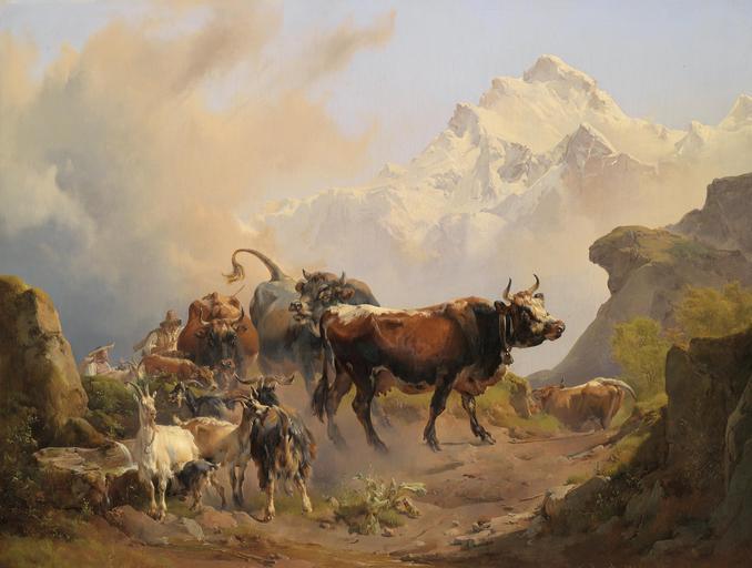Keywords: Johann Nepomuk Rauch Almabtrieb 1845.jpg Almabtrieb J N Rauch 1845 signature/date oil on canvas 64 x 85 cm http //www dorotheum com Dorotheum 1845 Johann Nepomuk Rauch 1804-1847 PD-old-70-1923 Images from Dorotheum Johann Nepomuk Rauch 1845 paintings Transhumance in the alps Paintings of cattle |