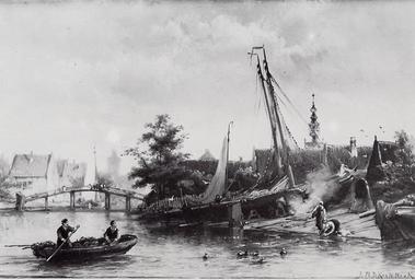 Keywords: Johannes Hermanus Barend Koekkoek (1840-1912) - Wharf at River Brink.jpg painting cm object history exhibition history credit line accession number place of creation Johannes Hermanus Barend Koekkoek PD-Art