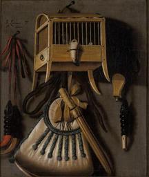 Keywords: Johannes Leemans - Stilleben mit Vogelfanggeräten (1660).jpg Artwork Creator Johannes Leemans 1660 oil canvas cm 70 5 59 5 institution Schlossmuseum Schloss Friedenstein accession number SG 662 object history credit line exhibition history J Leemans F / A 1660 ~ upper left signature / date 13850663 PD-old-100 DEFAULTSORT Leemans Johannes; Stillleben 1660; Schloss Friedenstein Johannes Leemans Schlossmuseum Gotha 17th-century paintings from the Netherlands Hunting in art Images from Bildarchiv Foto Marburg |