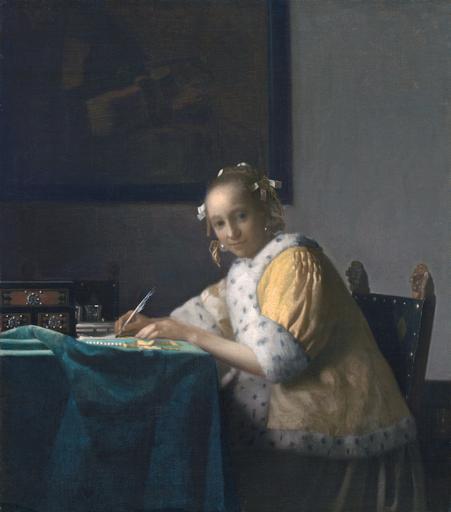 MAKE A MEME View Large Image Johannes Vermeer - A lady writing (c 1665-1666).jpg Artwork LangSwitch A lady writing Schrijvend meisje oil canvas cm 45 39 9 Washington D C National Gallery of Art centre left IVMeer object history Provenance by 1674 Pieter van Ruijven ...
