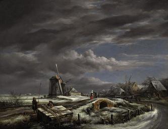| Keywords: John Constable - A winter landscape with with figures on a path.jpg Artwork Creator John Constable oil canvas cm 55 8 71 4 accession number object history credit line exhibition history inscribed 'Ruisdael' lower right <br/> inscribed on the stretcher 'Copied from the Original Picture by Ruisdael in the possession of Sir Robt Peel Bt by me John Constable RA at Hampstead Sep 1832 P S color Dog added only Size of the Original and Showed this pictures to Dear John Dunthrone Octr 30 1832 this was the last time I ' and further inscribed 'Poor J Dunthorne died on Friday all Saints the 2d of November 1832-at 4 o clock in the afternoon Aged 34 years ' christies online 5403365 2415 34 New York 26 January 2011 PD-old-100 Landscape Paintings by John Constable 19th-century landscape paintings Paintings of winter 19th-century paintings location missing Footbridges in art |