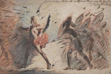 | Keywords: John Flaxman - Apollo Preceding Hector with His Aegis, and Dispersing the Greeks, Fuseli's Lectures - Google Art Project.jpg Google Art Project watercolor York 1755 London 1826 John male 2345206 Flaxman British 1755 - 1826 /collection/yale-center-for-british-art/artwork/apollo-preceding-hector-with-his-aegis-and-dispersing-the-greeks-fuselis-lectures-john-flaxman/2354554/ John Flaxman Artist /artist/john-flaxman/4127625/ 4127625 /collection/yale-center-for-british-art/ Yale Center for British Art 2305845 http //britishart yale edu/ 2/23/2012 9 31 43 PM /collection/yale-center-for-british-art/artwork/apollo-preceding-hector-with-his-aegis-and-dispersing-the-greeks-fuselis-lectures-john-flaxman/2354554/ 1770 undated soldiers Hector Apollo men battle armors swords historical subject shield-shaped Graphite with black chalk red chalk watercolor and gouache on medium slightly textured cream laid paper 203 2354554 False 1826 3/24/2012 1 31 44 PM YCBA/lido-TMS-2038 http //collections britishart yale edu/vufind/Record/1667059 Yale Center for British Art Paul Mellon Collection painting 1770 1830 London Creation w295 x h203 cm undated False 1 48405797101449 Volume apollo-preceding-hector-with-his-aegis-and-dispersing-the-greeks-fuselis-lectures-john-flaxman Apollo Preceding Hector with His Aegis and Dispersing the Greeks Fuseli's Lectures a 295 Inscribed in brown ink upper center Apollo preceding Hector with his Aegis and dispersing the Greeks Fuzeli's Lectures Inscription _Marks Watermark Brittania Watermark of about 1787 Inscription _Signed_and_Dated Not signed not dated Not on View Graphite with black chalk red chalk watercolor and gouache on medium slightly textured cream laid paper soldiers Hector Apollo men battle armors swords historical subject shield-shaped special url_id tgHk_QsRtBybfA PD-old-100-1923 1826 John Flaxman Google Art Project works by John Flaxman |