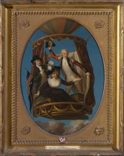 | Keywords: John Francis Rigaud - Captain Vincenzo Lunardi with his Assistant George Biggin, and Mrs. Letitia Anne Sage, in a Balloon - Google Art Project.jpg No inscription Inscription _Signed_and_Dated Not signed not dated Not on View Oil on copper sky union jack Lunardi Vincenzo 1759 “1806 balloonist Sage Letitia Anne Biggin George invention gesture pose assistant actress men woman science entertainment ropes fringe trim feathers velvet gold braid benches curtains fichu neckpiece hats breeches trousers cravats tricorne coats costume dress dress costume scientific instruments gown altimeter balloon hot-air balloon genre subject historical subject portrait ballooning ambassador special url_id XQH41_zmcGlbVw PD-old-100-1923 1810 John Francis Rigaud Google Art Project works by John Francis Rigaud Union flag in art 18th-century portrait paintings in the Yale Center for British Art |
