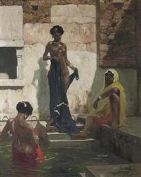 Keywords: John Gleich - At the baths.jpg > 1927 oil canvas cm 66 53 6 accession number object history credit line signed 'John Gleich' lower right http //www bonhams com/auctions/13095/lot/99/ Bonhams PD-old-auto-1923 1927 Orientalist paintings by John Gleich Images from Bonhams