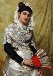 | Keywords: John Haynes Williams The Spanish fan.jpg The Spanish fan Signed HaynesWilliams Oil on canvas 38 5 x 26 cm http //www bonhams com/ Bonhams by 1908 John Haynes Williams 1836-1908 PD-old Images from Bonhams John Haynes-Williams Portraits with fans Lace in art |