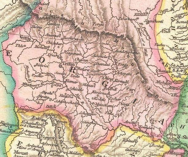 | Keywords: John Pinkerton. Map of Persia. 1818.C. Georgia.jpg en A rare and important 1818 map of Persia by John Pinkerton Depicts from the Black Sea eastward as far as the Indus Valley extends north to the Aral Sea and South to the Persian Gulf and the Arabian Sea Includes the modern day countries of Iran and Afghanistan as well as parts of adjacent Pakistan Kuwait Iraq Turkey and Arabia Notes both political and physical geographic elements including rivers mountains under sea dangers various tribal regions cities ruins and canals In particular notes the ruins of both Babylon and Persepolis Drawn by L Herbert and engraved by Samuel Neele under the direction of John Pinkerton The map comes from the scarce American edition of Pinkerton ™s Modern Atlas published by Thomas Dobson Co of Philadelphia in 1818 Image 1818 Pinkerton Map of Persia Iran Afghanistan - Geographicus - Persia2-pinkerton-1818 jpg Original from Persia2-pinkerton-1818 Pinkerton J <i>A Modern Atlas from the Lates and Best Authorities Exhibiting the Various Divisions of the World with its chief Empires Kingdoms and States; in Sixty Maps carefully reduced from the Larges and Most Authentic Sources </i> 1818 Philadelphia Thomas Dobson Edition Geographicus-source 1818 undated Creator John Pinkerton PD-Art-100 ImageNote 1 70 122 37 22 677 566 2 Gori ImageNoteEnd 1 ImageNote 2 223 219 56 19 677 566 2 Tefflis Tbilisi ImageNoteEnd 2 Maps by John Pinkerton 1818 maps Maps in English 19th-century maps of Georgia |