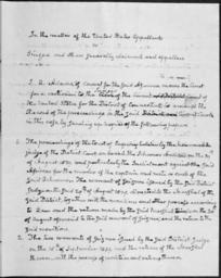 | Keywords: John Quincy Adams' Request for Papers Relating to the Lower Court Trials of the Amistad Africans (Petition for... - NARA - 301671.tif Scope and content In the trial before the Supreme Court the Africans were represented by John Quincy Adams a former U S President and descendant of American revolutionaries Preparing for his appearance before the Court Adams requested papers from the lower courts one month before the proceedings opened For 8 1/2 hours the 73-year-old Adams passionately and eloquently defended the Africans' right to freedom on both legal and moral grounds referring to treaties prohibiting the slave trade and to the Declaration of Independence General notes Exhibit no 624 0199 Exhibit History American Originals December 1997 - June 1998 National Archives Rotunda Washington DC Exhibit No 624 0199 The Rights of All April 1987 - July 1987 Schomburg Center New York NY Exhibit No 1040 0003 301671 Local identifier Supreme Court of the United States 02/02/1790 - Archives I Reference Section Textual Archives Services Division NWCT1R National Archives Building 7th and Pennsylvania Avenue NW Washington DC 20408 1841 Record group Record Group 267 Records of the Supreme Court of the United States 1772 - 2007 Record group ARC 594 Appellate Jurisdiction Case Files compiled 1792 - 2006 Series ARC 301668 File unit United States Appellants v The Libellants and Claimants of the Schooner Amistad her tackle apparel and furniture together with her cargo and the Africans mentioned and described in the several libels and claims Appellees 1839 - 1841 File unit ARC 561022 Variant control numbers NAIL Control Number NWCTB-267-PI139E21-2161 CERT <br /> NAIL Control Number NWDT1-267-PI139E21-2161 CERT <br /> Other Identifier 02485<br /> This is the NARA internal exhibit tracking number yes Other versions <gallery> File John_Quincy_Adams'_Request_for_Papers_Relating_to_the_Lower_Court_Trials_of_the_Amistad_Africans_ Petition_for _-_NARA_-_301671 tif tif File John_Quincy_Adams'_Request_for_Papers_Relating_to_the_Lower_Court_Trials_of_the_Amistad_Africans_ Petition_for _-_NARA_-_301671 jpg jpg </gallery> NARA-cooperation PD-USGov John Quincy Adams 1841 in the United States Supreme Court of the United States cases NARA TIF images with categorized JPGs |