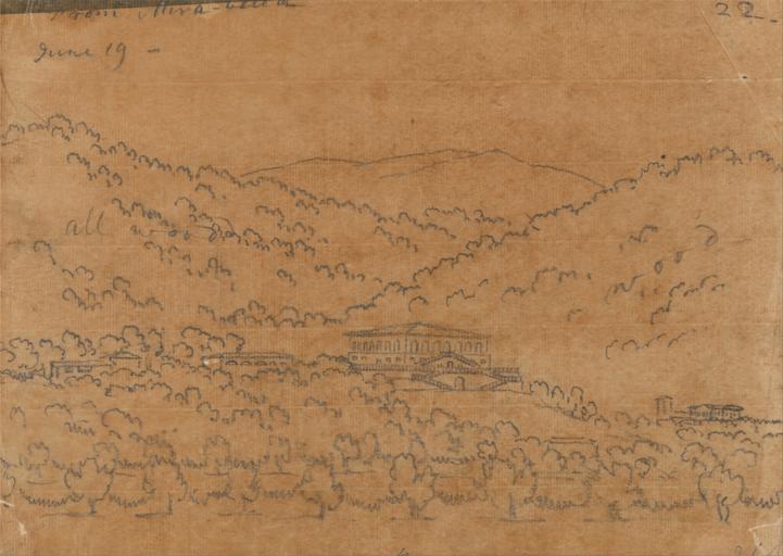 | Keywords: John Robert Cozens - From Mirabella, June 19 - Google Art Project.jpg Inscribed in graphite upper left From Mira-bella June 19 - ; in graphite upper right 22 ; in graphite center left all ; in graphite center right wood ; in graphite lower left 140 ; in graphite lower center 4 ; in graphite lower right B / Inscription _Signed_and_Dated not signed Not on View Graphite and varnish on thin slightly textured beige laid paper mountains trees buildings landscape special url_id mAGvWj25G1-WSw PD-old-100-1923 1799 Italy in art by John Robert Cozens Google Art Project works by John Robert Cozens |