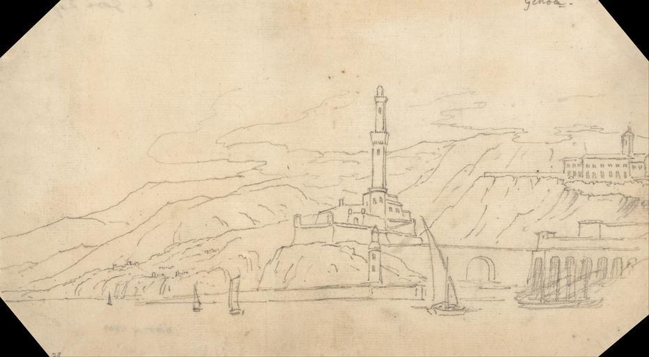 Keywords: John Robert Cozens - Genoa - Google Art Project.jpg Inscribed in artist's hand in graphite upper right Genoa ; in graphite lower left 98 Inscription _Signed_and_Dated not signed Not on View Graphite and varnish on thin slightly textured cream laid paper architectural subject clouds towers buildings ships landscape special url_id qgE0nXSzi0_ixA PD-old-100-1923 1799 Italy in art by John Robert Cozens Google Art Project works by John Robert Cozens |