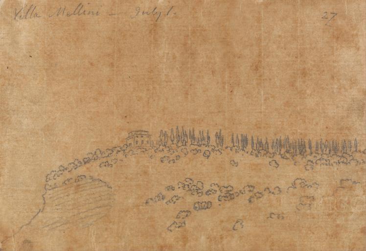 | Keywords: John Robert Cozens - Villa Mellini, July 1 - Google Art Project.jpg Inscribed in graphite upper left Villa Mellini - July 1 ; in graphite upper right 27 ; in graphite lower left 131 Inscription _Signed_and_Dated not signed Not on View Graphite and varnish on thin slightly textured cream laid paper trees buildings landscape special url_id jQHbVX-QMn-fsA PD-old-100-1923 1799 Italy in art by John Robert Cozens Google Art Project works by John Robert Cozens | ||||