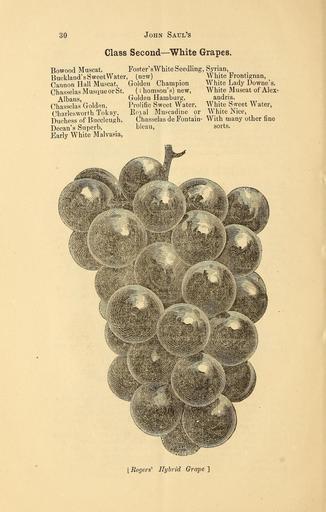 | Keywords: John Saul's descriptive catalogue of fruits (16250335757).jpg 30 <br> John Saul's <br> Bowood Muscat <br> Buckland'sSweetWater nsw <br> Class Second White Grapes <br> Foster' sWhite Seedling Syrian <br> Cannon Hall Muscat <br> Chasselas Musque or St <br> Albans <br> Chasselas Golden <br> Cbarle worth Toka5 <br> Duchess of Buccleugh <br> Decan's Superb <br> Early White Malvasia <br> Golden Champion <br> i homson's new <br> Golden Hamburg <br> Prolific Sweet VVater <br> Kojal Muscadine or <br> Chasselas de Fontain- <br> bleau <br> White Frontignan <br> White Lady Downe's <br> AVhite Muscat of Alexr <br> andria <br> White Street Water <br> White Nice <br> With many other fine <br> sorts <br> Rogers Hybrid Grape 42388198 134051 66774 Page 30 Text http //www biodiversitylibrary org/page/42388198 1870 10 5962/bhl title 66774 Henry G Gilbert Nursery and Seed Trade Catalog Collection ; John Saul Firm Washington D C Biodiversity Heritage Library John Saul's descriptive catalogue of fruits Garden Stories Catalogs Fruit Nurseries Horticulture Plants Seeds U S Department of Agriculture National Agricultural Library bhl page 42388198 dc identifier http //biodiversitylibrary org/page/42388198 Rogers hybrid grape bhlGardenStories BHLinbloom nurseries horticulture u s department of agriculture national agricultural library bhlgardenstories bhlinbloom Information field Flickr posted date ISOdate 2015-02-03 CC-BY-2 0 BioDivLibrary https //flickr com/photos/61021753 N02/16250335757 2015-08-24 06 53 13 cc-by-2 0 PD-old-70-1923 John Saul's descriptive catalogue of fruits Photos uploaded from Flickr by FĂŚ using a script |