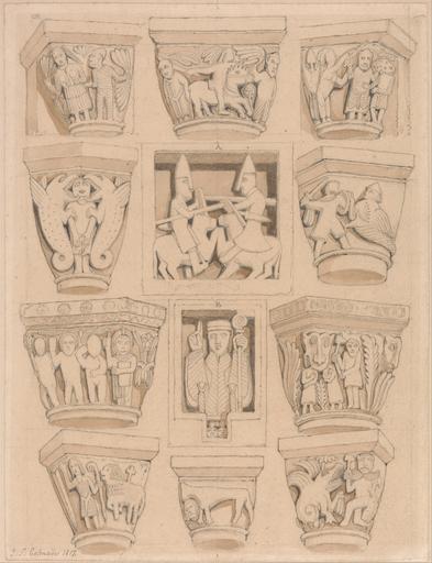 | Keywords: John Sell Cotman - Capitals and A & B Bas-Reliefs in the Abbey Church of Saint Georges de Bocherville, near Rouen, Norm... - Google Art Project.jpg Inscribed in graphite lower left J S Cotman 1817 ; in graphite lower left Capitals and A B bas-reliefs in the Abbey Church of St Georges de Bocherville Inscription _Marks Collector's mark RIBA blind embossed stamp; Watermark on first mount blind stamp Thomas Creswick Improved DrawG Paper Rough Inscription _Signed_and_Dated Signed and dated in graphite lower left J S Cotman 1817 Not on View Graphite and brown wash on medium smooth cream wove paper architectural subject horses animals monsters capitalism Medieval capitals church abbey bas-reliefs special url_id jgFaG3x-ZJqx7Q PD-old-100-1923 1842 Normandy by John Sell Cotman Google Art Project works by John Sell Cotman Abbaye Saint-Georges de Boscherville |