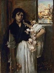 | Keywords: John Singer Sargent - Venetian Onion Seller.jpg Artwork Creator John Singer Sargent es Vendedora veneciana de cebollas 1880-1882 oil canvas cm 95 70 institution Museo Thyssen-Bornemisza accession number 1979 56 object history credit line http //www museothyssen org/thyssen/ficha_obra/879 Museo Thyssen-Bornemisza Madrid PD-old-auto-1923 1925 Female portrait paintings by John Singer Sargent Paintings of women by John Singer Sargent Onions in art Paintings of Venice by John Singer Sargent Romantic paintings of Italian women 1880s portrait paintings American paintings in the Thyssen-Bornemisza Museum Madrid |