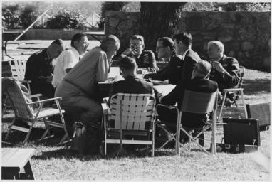 Keywords: Joint Chiefs of Staff meet at the LBJ Ranch - NARA - 192566.tif Scope and content Location LBJ Ranch Depicted Major General Chester Clifton Secretary of Defense Robert McNamara President Lyndon B Johnson General Curtis LeMay General Earle Wheeler Deputy Secretary of Defense Cyrus Vance General Harold Johnson Admiral David McDonald General Wallace Greene General notes 192566 Local identifier President 1963-1969 Johnson White House Photograph Office 1963 - 1969 Creator Yoichi Okamoto Lyndon Baines Johnson Library NLLBJ 2313 Red River Street Austin TX 78705-5702 1964-12-22 Record group Collection LBJ-WHPO White House Photo Office Collection 11/22/1963 - 01/20/1969 Record group ARC 1153 Johnson White House Photographs compiled 11/22/1963 - 01/20/1969 Series ARC 192480 File unit File unit ARC Variant control numbers NAIL Control Number NLJ-WHPO-A-VN086<br /> Other Identifier W522-13a yes Other versions NARA-cooperation PD-USGov LBJ Ranch Chester Victor Clifton Jr Robert McNamara Lyndon B Johnson in 1964 1222 Curtis LeMay Earle Wheeler Cyrus Vance Harold Keith Johnson David L McDonald Wallace M Greene Jr Photographs by Yoichi Okamoto |
