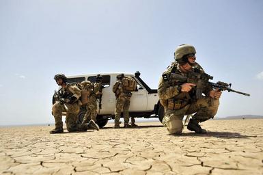 | Keywords: Joint Mass Casualty Exercise DVIDS176477.jpg  en A U S Air Force Guardian Angel team from 82nd Expeditionary Rescue Squadron provides security during a joint mass casualty exercise near Camp Lemonier The tactical recovery team worked alongside Marines from 13th Marine Expeditionary Unit to recover simulated IPs in an austere environment 2009-05-20 Petty Officer 2nd Class Jesse Awalt https //www dvidshub net/image/176477 090520-N-+++++-238 2009-06-01 06 04 GRAND BARA DJ PD-USGov-Military-Navy 13th Marine Expeditionary Unit Camp Lemonnier Images from DoD uploaded by Fæ |