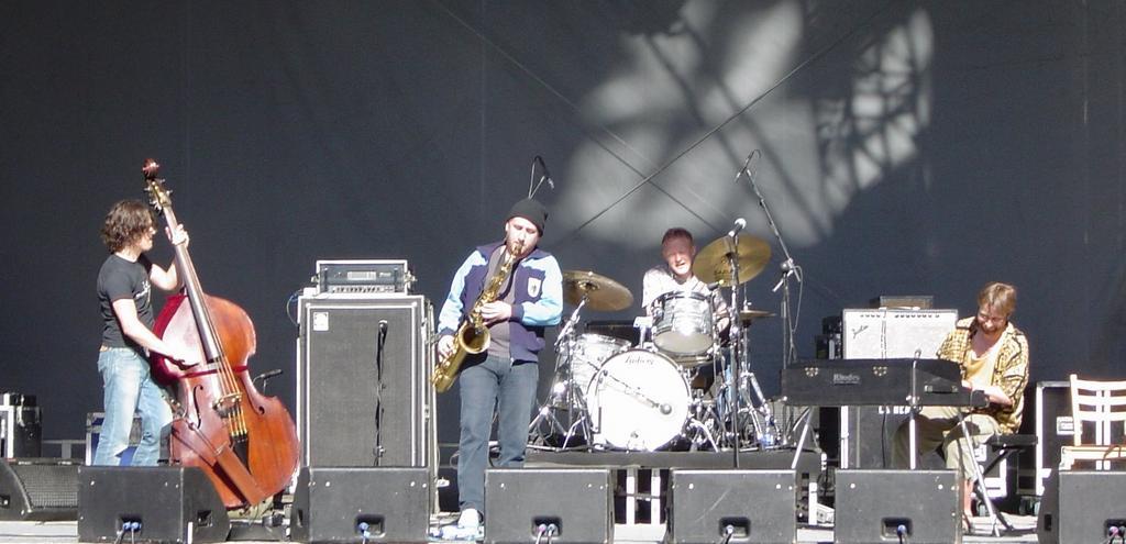 Keywords: Jonas Kullhammar Quartet Accelerator 2004.jpg Jonas Kullhammar Quartet playing at Accelerator The Big One in Stockholm 2004 2004-07-08 own assumed Skagedal 2004 concerts Musical groups from Sweden Jonas Kullhammar