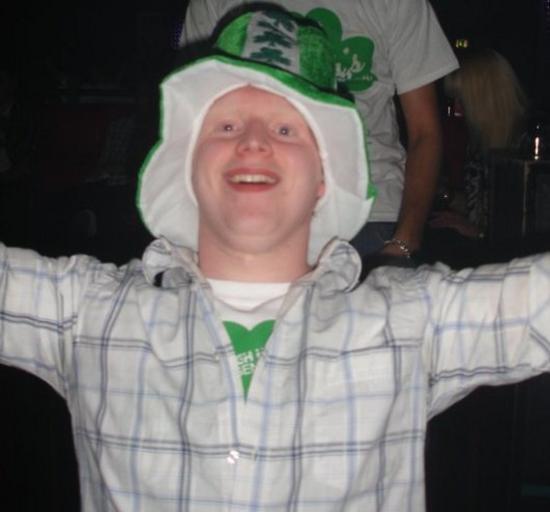 Keywords: Jonny eyebrows.jpg en A young male with alopecia picture showing loss of eyebrows Jonny Jonny eyebrows 2010-04-29 Personality rights Men with hats Alopecia totalis Eyebrows Saint Patrick's Day 2010