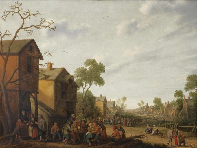 | Keywords: Joost Cornelisz. Droochsloot - Een dorp scène met boeren eten en drinken...etc.jpg Artwork Creator Joost Cornelisz Droochsloot en A village scene with peasants eating and drinking outside an inn beggars to the left 1646 Oil on canvas cm 77 102 5 Private collection accession number object history Provenance Anonymous sale New York Christie's 18 January 1984 lot 154 credit line signed and dated lower centre left Jc in ligature Drooch Sloot / 1646 http //www sothebys com/de/auctions/ecatalogue/2008/old-master-paintings-am1051/lot 63 html sotheby's PD-old-100-1923 1666 Joost Cornelisz Droochsloot 1628 1646 paintings Images from Sotheby's 17th-century rural life in painting 17th-century paintings location missing |