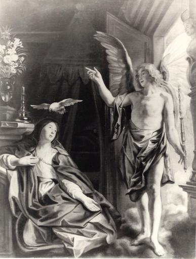 | Keywords: Jordaens Annunciation.JPG The Annunciation Creator Jacob Jordaens s 1640 oil canvas cm 113 150 Catalogue of paintings removed from Poland by the German occupation authorities during the years 1939-1945 1 Foreign paintings / comp Władysław Tomkiewicz ; Ministry of Culture and Art Warsaw 1950 Editor Ministry of Culture and Art See also http //kolekcje mkidn gov pl/ Department of National Heritage Wartime losses an official webpage of Polish Ministry of Culture Art and National Heritage object history b 1939/1945 The J and K Bartoszewicz City Museum of History and Art in Łódź provenanceEvent 1939/1945 destruction PD-Art PD-old-100 Paintings by Jacob Jordaens 17th-century foreign paintings lost in Poland during World War II Missing items from the Art Museum in Łódź Baroque paintings of Annunciation |