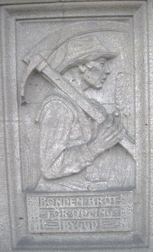 Keywords: Jordbruk. Bonden bröt för odling byggd.JPG en Picture of detail on Nordiska museet depicting agriculture sv Foto av detalj på Nordiska museet föreställande jordbruk Bonden bröt för odling byggd lyder texten own Raphael Saulus Agriculture in Sweden Reliefs in Nordiska museet Reliefs in Stockholm Farmers in art