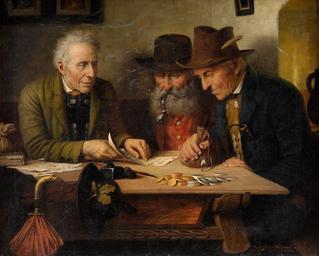 | Keywords: Josef Wagner-Höhenberg Beim Notar.jpg Beim Notar oil canvas cm 55 70 Signiert http //www duesseldorfer-auktionshaus de/ 2011/1 by 1939 Josef Wagner-Höhenberg 1870 “1939 <gallery>File Josef Wagner-Höhenberg Die Abrechnung jpg similar painting</gallery> PD-old-70 Josef Wagner-Höhenberg Tracht in art Notaries Genre paintings Money in art Images from Düsseldorfer Auktionshaus Paintings of sitting men reading indoors | ||||