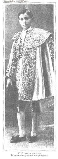 | Keywords: Joselito-su-primer-traje-de-luces.jpg es José Gomez Gallito la primera vez que vestiò el traje de luces 1927-12-28 Mundo Grafico 28 12 1927 pag 5 author PD-old José Gómez Ortega Mundo Gráfico bullfighters Black and white photographs of men Black and white photographs of Spain Historical images of Spain People of Spain in 1927 |