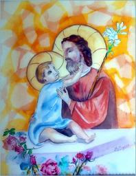 Keywords: joseph baby jesus painting christ scene religion christianity representation human people religious church catholic belief faith prayer hope holy spirituality spiritual male love bible faithful lord children saint boy st