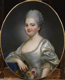 | Keywords: Joseph Ducreux, Madame Clotilde (1768-1769).jpg attributed to LangSwitch Portrait of 1773 Oil on canvas cm 65 54 Institution Versailles 000PE007444 other versions <gallery>Portrait of Marie Clotilde of France by Joseph Ducreux jpg</gallery> PD-Art-old-100 DEFAULTSORT 1773; Clotilde of France Joseph Ducreux 18th-century portrait paintings in the Musée national du Château de Versailles Marie Clotilde of France 1773 oil on canvas paintings in France 1773 portrait paintings from France 1770s dresses 18th-century oil oval portraits of women at half length 18th-century three-quarter view portrait paintings of women facing left and looking at viewer Arms resting on cushions in portrait paintings Female hair fashion in art Females wearing rouge in portraits Females with clothing with pearls in art Females with white satin dresses in art Needle lace in art Portrait paintings of females holding roses Powdered hair in art Rococo portrait paintings of women |