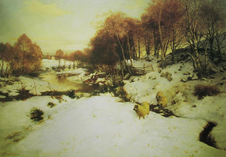 Keywords: joseph farquharson art artistic artistry painting oil on canvas landscape nature outside sky clouds country countryside trees forest woods stream water reflections winter snow ice