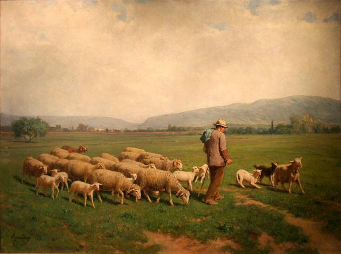 | Keywords: Jourdan-berger au pâturage.jpg  Artwork 1901 Oil on canvas cm 147 195 Musée de Salon et de la Crau dans le musée de L'Empéri à Salon-de-Provence object history credit line accession number FP21 own work see below PD-old-100 cc-by-sa-3 0 Uploaded with UploadWizard Théodore Jourdan Sheep breeds in Crau Shepherds in Provence 1901 paintings Musée de l'Empéri |