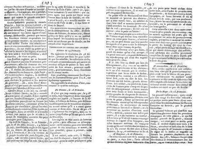 | Keywords: Journal de Bruxelles nr 83 1799 (658 659).jpg French Republican Calendar French republican date is Tridi 23 Frimaire VIII Saturday 14 December 1799 This journal contains many dispatches with news all over Europe Journal de Bruxelles 1799 J L Deboubers 1799-12-14 File Journal de Bruxelles nr 83 1799 657 jpg File Journal de Bruxelles nr 83 1799 660_661 jpg News Paris 10-12-1799 Nantes 6-12-1799 Amsterdam 4-12-1799 The Haque 6-12-1799 PD-old-100-1923 Journal de Bruxelles nr 83 1799 in Paris History of Nantes Amsterdam in the 1790s The Hague in the 1790s Batavian Republic |