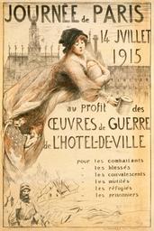 | Keywords: Journée de Paris. 14 Juillet 1915 au profit des oeuvres de guerre de l'Hôtel-de-Ville.jpg A woman holding a baby in her arm and holding a collection cup in her hand At the bottom is a sketch of a French soldier Published Paris Devambez 1915 1 print poster lithograph two colors 120 x 80 cm Institution LoC object history exhibition history credit line accession number LOC-image cph 3f03961 PD-100 Images of Paris from the Library of Congress World War I posters of France French soldiers in art Mother and child in art Posters in Paris Historical images of Hôtel de Ville de Paris 1915 in Paris Paris in World War I Lithographs of Paris 1915 lithographs 1915 posters Cups in art Maison Devambez |