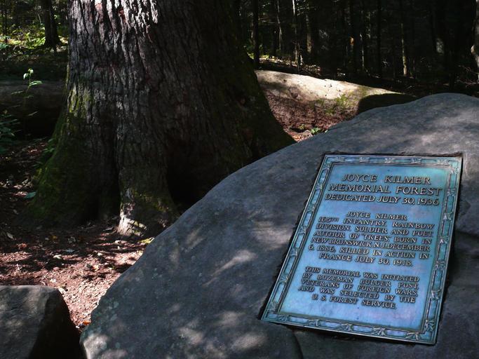 | Keywords: Joyce Kilmer Forest-27527-3.JPG This memorial to American poet Joyce Kilmer stands near the center of Joyce Kilmer Memorial Forest Part of the Nantahala National Forest and the Slickrock Wilderness the 3840-acre memorial area is one of the few remaining examples of old growth hardwood forest in the eastern United States The forest is home to many poplar beech sycamore and oak trees some of which exceed 20 feet in circumference and are thought to be over 400 years old <br>Photo taken with a Panasonic Lumix DMC-FZ50 in Graham County NC USA http //www kenthomas us KenThomas us<br> personal website of photographer 2008-09-07 10 10-04 <sup>ISO 8601</sup> Ken Thomas This image is released to the public domain and therefore no permission or credit is required <br>Comments and/or feedback however are always welcome See my user page for contact info 35 21 19 40 N 83 56 03 25 W heading SW Joyce Kilmer Joyce Kilmer Memorial Forest Taken with Panasonic Lumix DMC-FZ50 Plaques to writers |