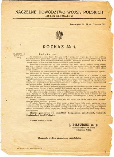 | Keywords: Józef Piłsudski - Rozkaz Józefa Piłsudskiego do żołnierzy Wojska Polskiego - 701-001-039-006.jpg Piłsudski Institute document pl Rozkaz Józefa Piłsudskiego do żołnierzy Wojska Polskiego 1920-12-31 pl Belweder; Pierwszy Marszałek Polski i Naczelny Wódz pl Speech; Proclamation Warszawa 701/1/39/6 701 180/1732 1887 Archiwum Józefa Piłsudskiego 1 PD-old-auto-1923 1935 For background information see PD in Poland US yes Collections of Józef Piłsudski Institute of America from 1920 Józef Piłsudski in 1920 Polish-Soviet War Writings of Józef Piłsudski Military documents of Second Polish Republic |