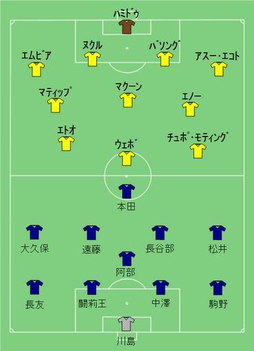 | Keywords: JPN-CMR 2010-06-14(jpn).png en 2010FIFA World Cup JPN vs CMR line-ups Japanese Version ja 2010FIFA ワールドカップ æ—¥æ ¬vsカメルーン ラインナップ オリジナル CARCASSI 2010-06-19 FIFA World Cup 2010 line-ups in Japanese Cameroon national football team line-ups Japan national football team line-ups |
