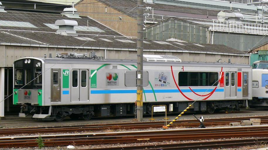 | Keywords: JR East E995-1 omiya.JPG JR East KuMoYa E995-1 NE Train Smart Denchi-kun experimental battery/electric hybrid railcar at Omiya General Rolling Stock Center JR 日 E995系電車 大宮総合車両センターにて Own 2009-11-08 まも Mamo 35 54 26 290283 N 139 37 25 111084 E alt 0_source exif_heading JR East E995 Omiya General Rolling Stock Center |