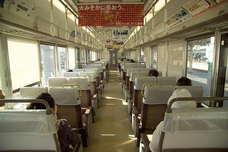 | Keywords: JRWestTrainInterior0302.jpg Interior view of a JR West train after leaving Nara Station Nara Japan I took this photo and contribute my rights in it to the public domain People and organizations depicted in it retain rights over the use of their images JR West 221 People on trains |