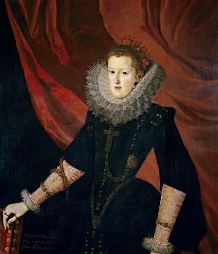 | Keywords: Juan Pantoja de la Cruz 017.jpg Retrato de la reina Margarita de Austria-Estiria 1584-1611 que fue reina consorte de España por su matrimonio con el rey Felipe III Portrait of Margaret of Austria 1584-1611 queen of Spain 1607 Oil on canvas cm 112 97 Institution Prado http //www museodelprado es/coleccion/galeria-on-line/galeria-on-line/obra/margarita-de-austria-reina-de-espana/ other versions PD-old-100 DEFAULTSORT 1607; Margaret of Austria Portrait paintings of Margaret of Austria by Juan Pantoja de la Cruz Portrait paintings by Juan Pantoja de la Cruz in the Prado Museum 17th-century portrait paintings in the Prado Museum 1600s dresses 1600s oil on canvas paintings in Spain Portrait 1600s paintings from Spain 1607 oil on canvas paintings Portrait 1607 portrait paintings 17th-century oil portraits of standing women at three-quarter length Females with black dresses in art Portrait paintings of queens of Spain Red drapery in portrait paintings Ruffs in art female |