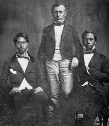 | Keywords: Judd and Kamehameha Princes.jpg en Lot Kamehameha Dr Gerrit Judd standing and Alexander Liholiho Photograph taken during their trip to the United States and Europe http //www hawaiihistory org/index cfm fuseaction ig image FileName img403 jpg hawaiihistory org<br />http //archives1 dags hawaii gov/gallery2/main php g2_itemId 2839 g2_imageViewsIndex 1 Hawaii State Archives Call Number PP-97-8-010<br />http //archives1 dags hawaii gov/gallery2/main php g2_itemId 2852 g2_imageViewsIndex 1 Hawaii State Archives Call Number PP-97-9-003 Author circa 1850 probably in Paris <gallery> File Judd and Kamehameha Princes jpg File Judd and Kamehameha Princes PP-97-8-010 jpg File Judd and Kamehameha Princes PP-97-9-003 jpg </gallery> PD-old Kamehameha V Kamehameha IV Gerrit P Judd Princes of Hawaii Files from Hawaii State Archives |